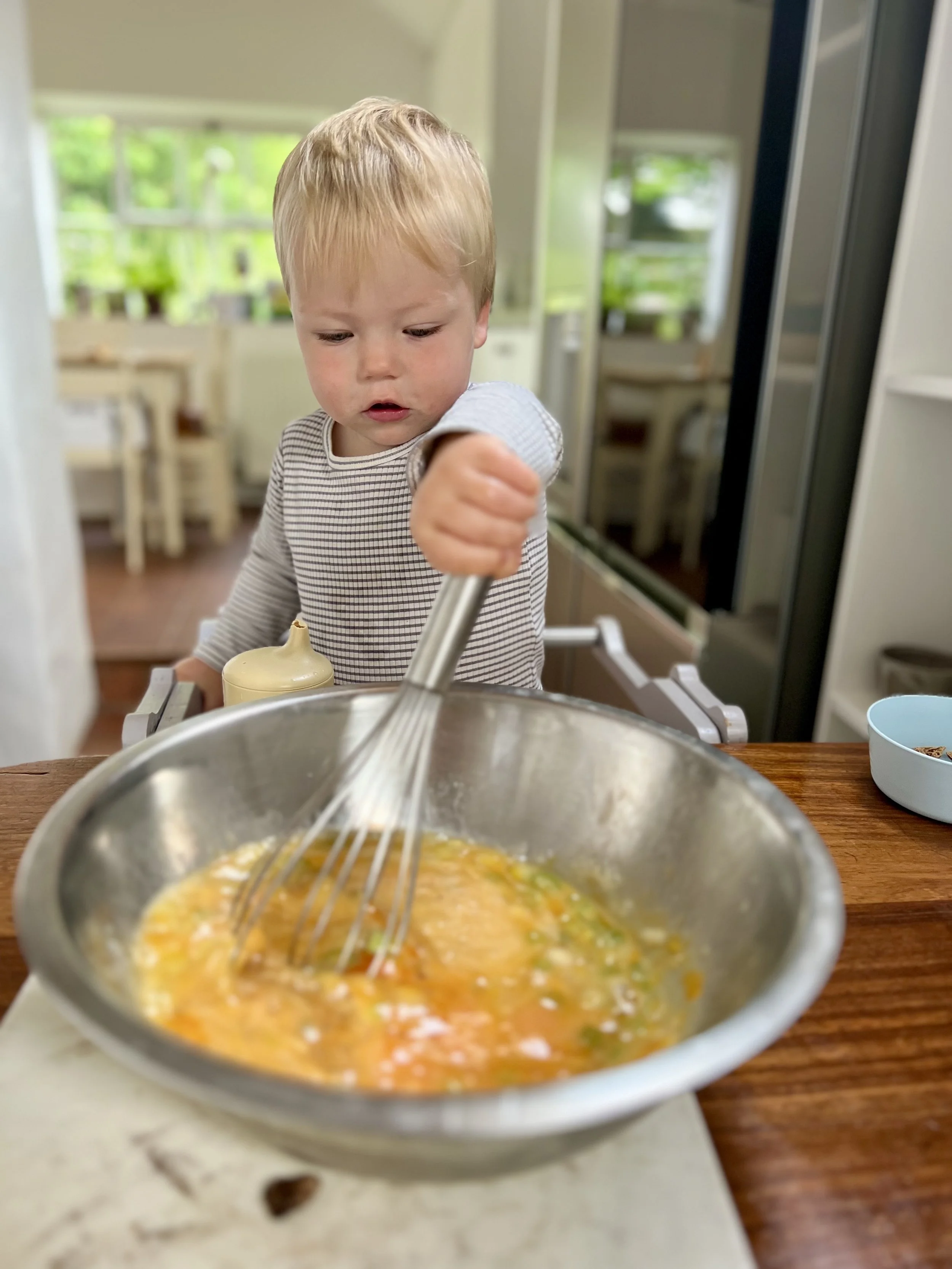 If the only goal is to get food on the table, it’s faster to do it alone. But if the goal is to raise kids who feel confident, curious, and connected to what they eat, then we must make space for the spills and the side commentary, for the extra-long pauses to lick the spoon, and I guess, even for the broken eggs.